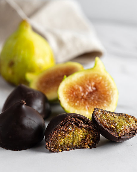 Elaborados artesanalmente, combinan tres ingredientes excepcionales: higos naturales de calidad Premium, una deliciosa crema de pistacho elaborada en nuestra casa y un baño de chocolate que aporta el toque final perfecto.